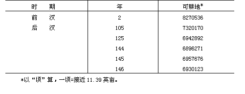[16] 来源见《后汉书》卷一下,第65页;可耕地数字见《汉书》卷二八下,第1640页和《后汉书·志》卷二三,第2534页的详细附注。