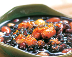 红枣糯米粥:'1.糯米、黑米分别洗净,用冷水浸泡3小时,捞出,沥干水分;2.元胡以小布袋包好;3.当归、红枣用冷水洗净;4.锅中加入约1500毫升冷水,将黑米、糯米、...