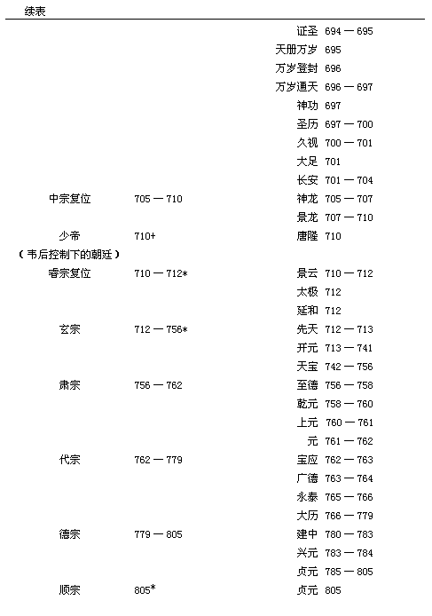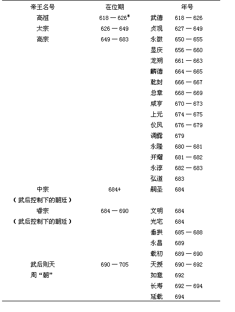 表3 唐代诸帝及其在位期